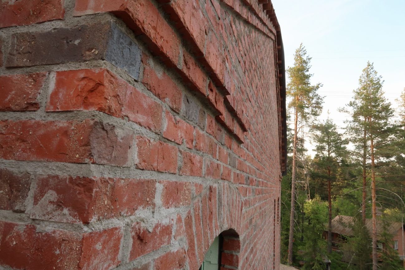 Tiiliseinien muurauksessa nähtiin vaivaa. Syksyllä 2022 muurattiin ensin toinen seinä, sitten tuli talvi väliin ja toinen seinä sai tiilipintansa keväällä 2023. Talon arkkitehtipiirustuksissa tiiliseinien ilmettä ei ollut tarkennettu, vaan seinien ladontaa ja koristekuviointia sekä ikkunoiden ylitykset suunniteltiin työn edetessä.