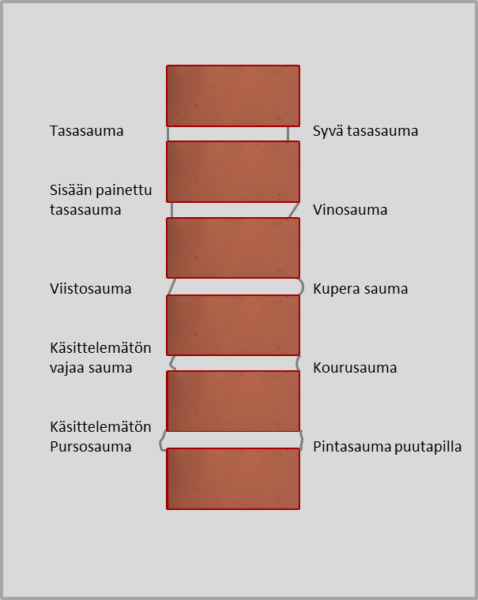 Tiiliseinän ulkonäköön vaikuttaa myös saumauksessa käytettävä työväline.