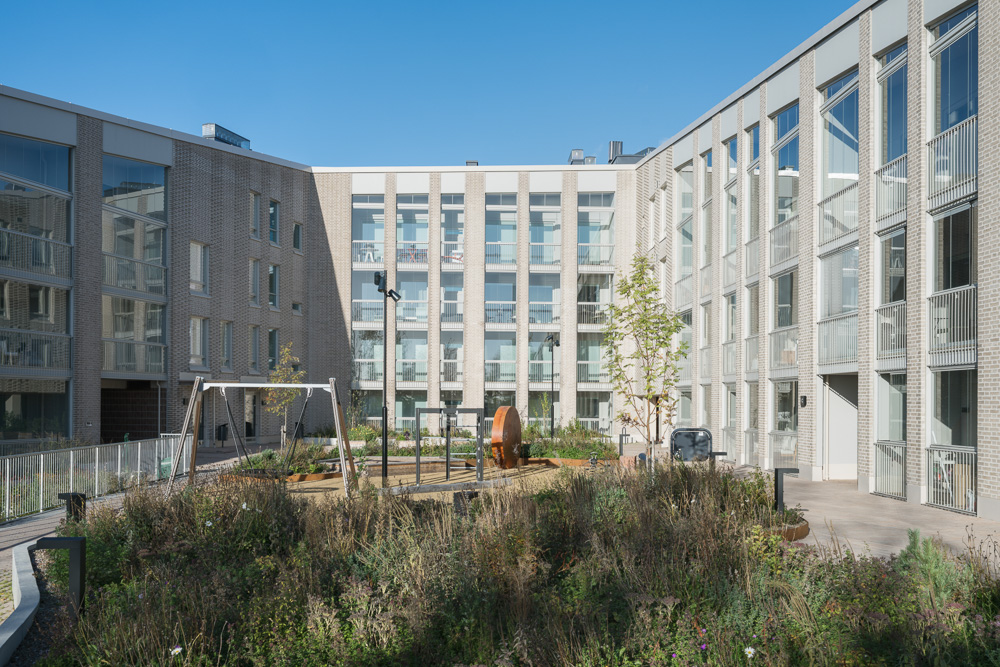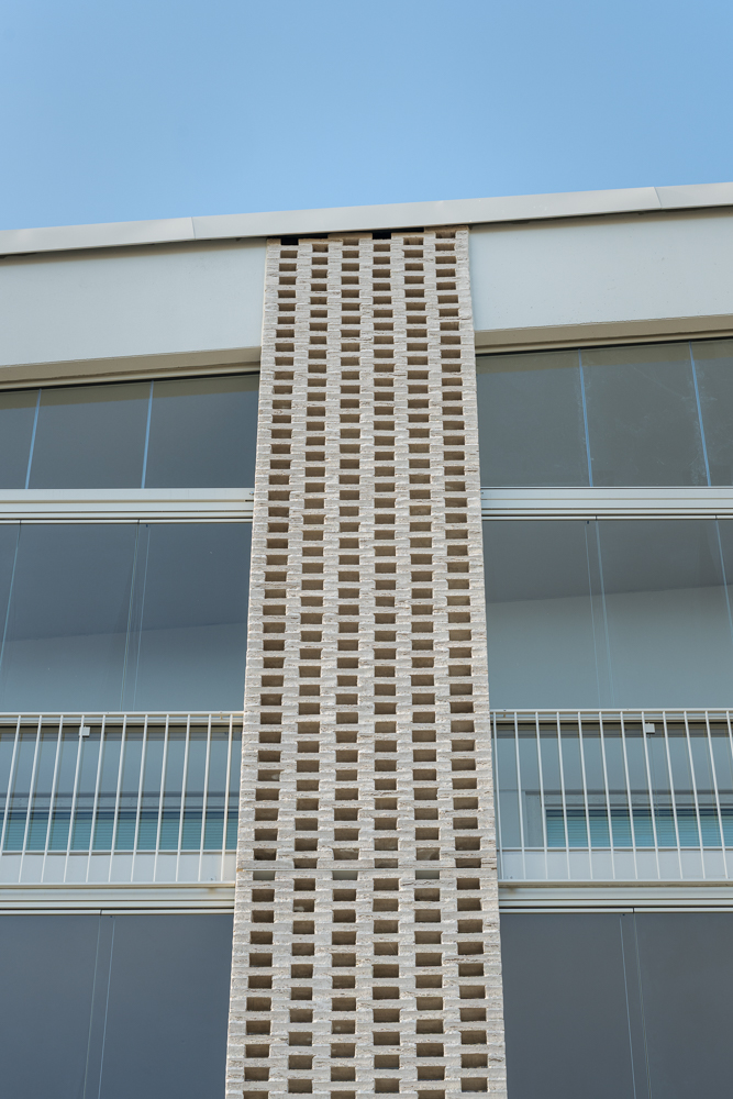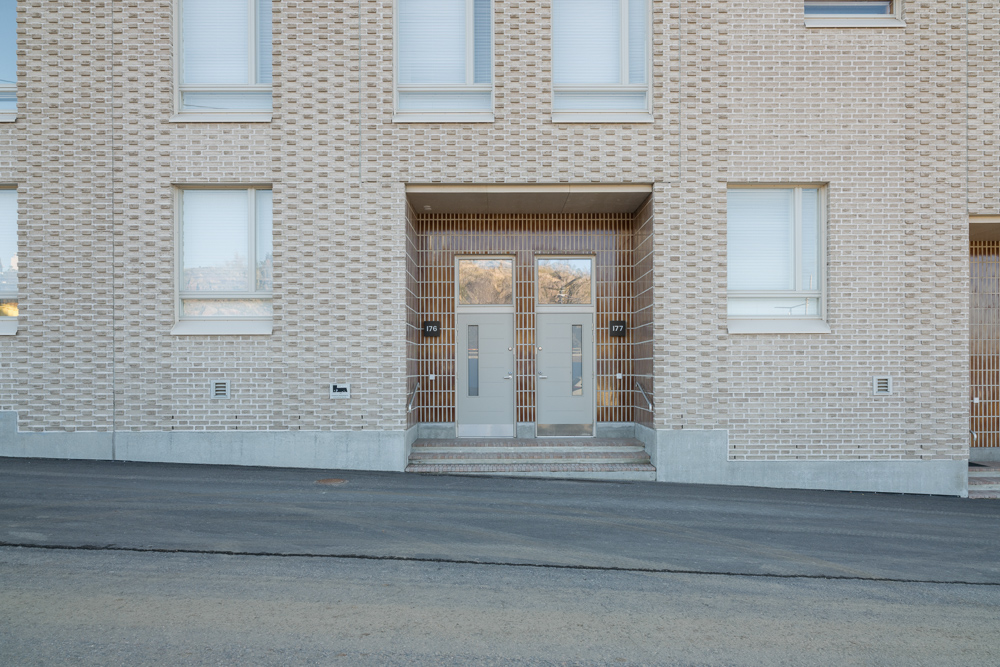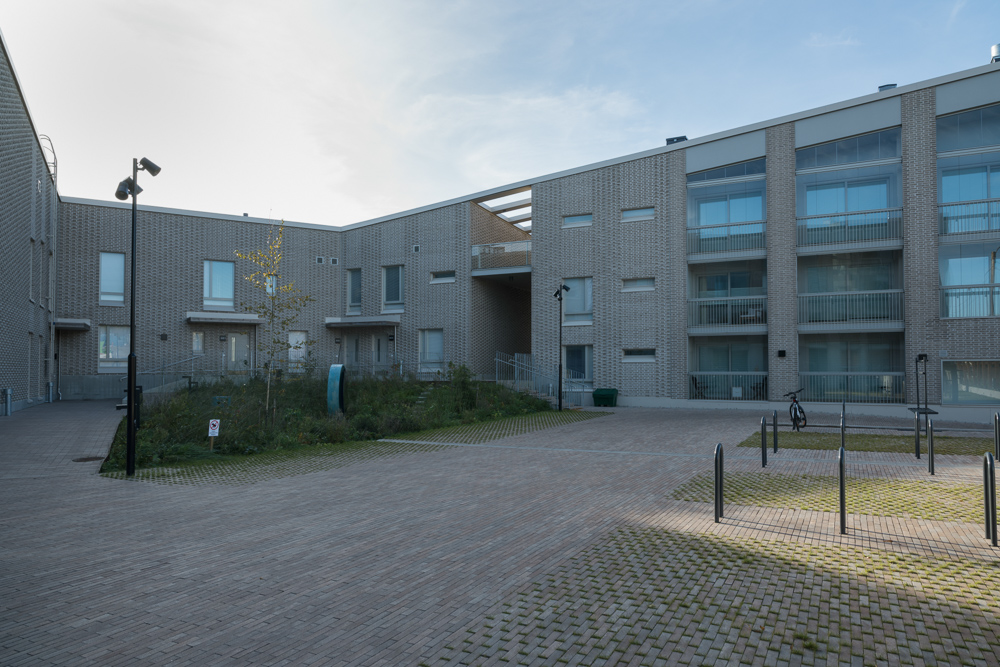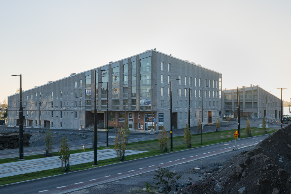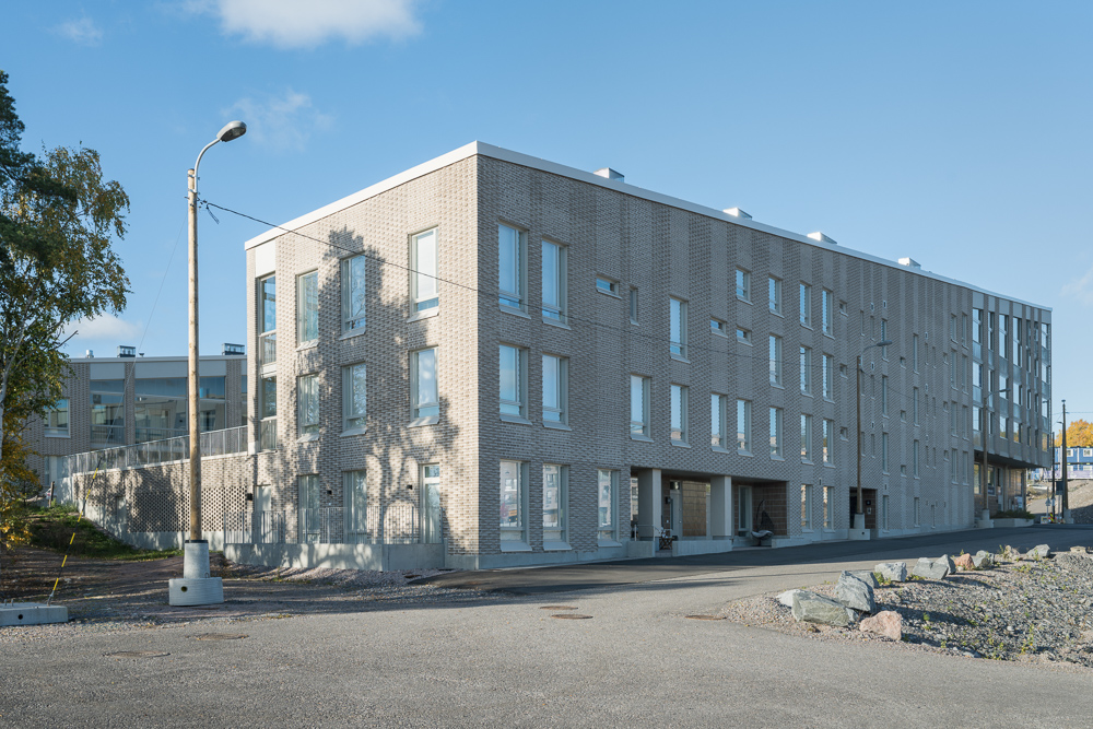 Pitkänomainen rakennusmassa taittuu tontilla kolmesti muodostaen mutkittelevan muodon. Rakennusmassojen väliin muodostuu kolme toisiinsa yhteydessä olevaa piha-aluetta. Rakennuksen julkisivu on muurattu Nordic Grey Ruukintiilellä. Julkisivua on elävöitetty reliefimuurauksella toteutetuilla kaistoilla. Parvekkeiden vieressä pitsimuuraus tuo parvekkeille näkösuojaa ja myös varjoa suoralta auringon valolta.
