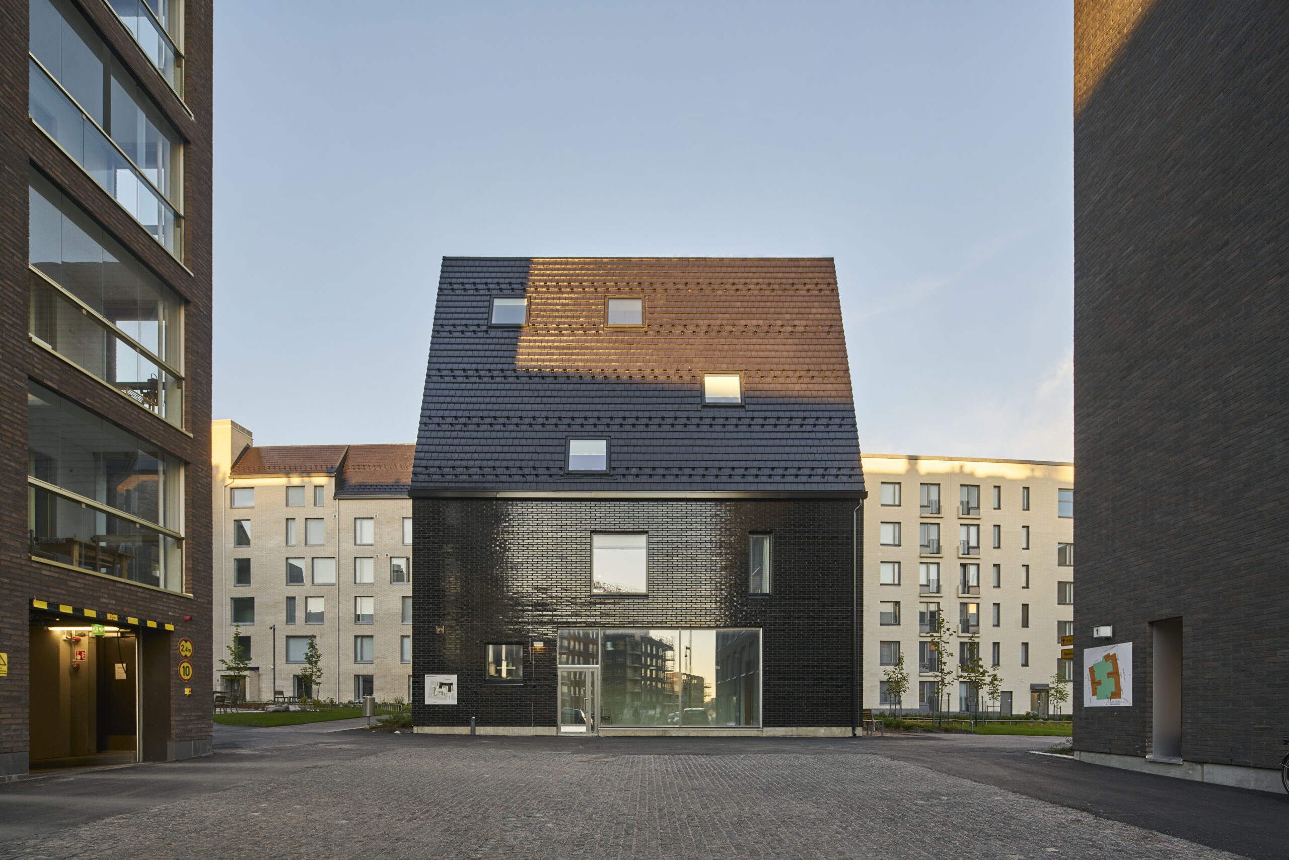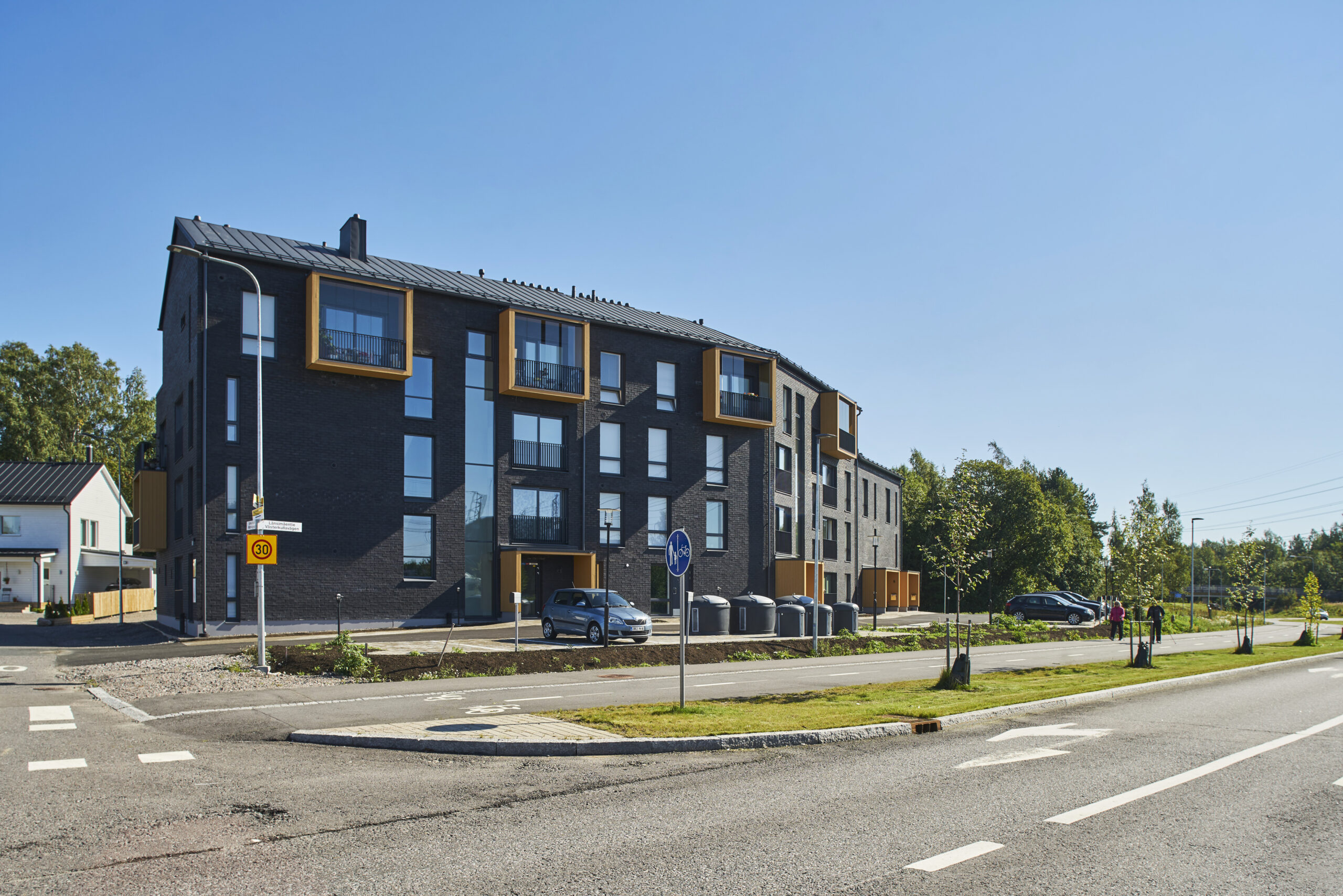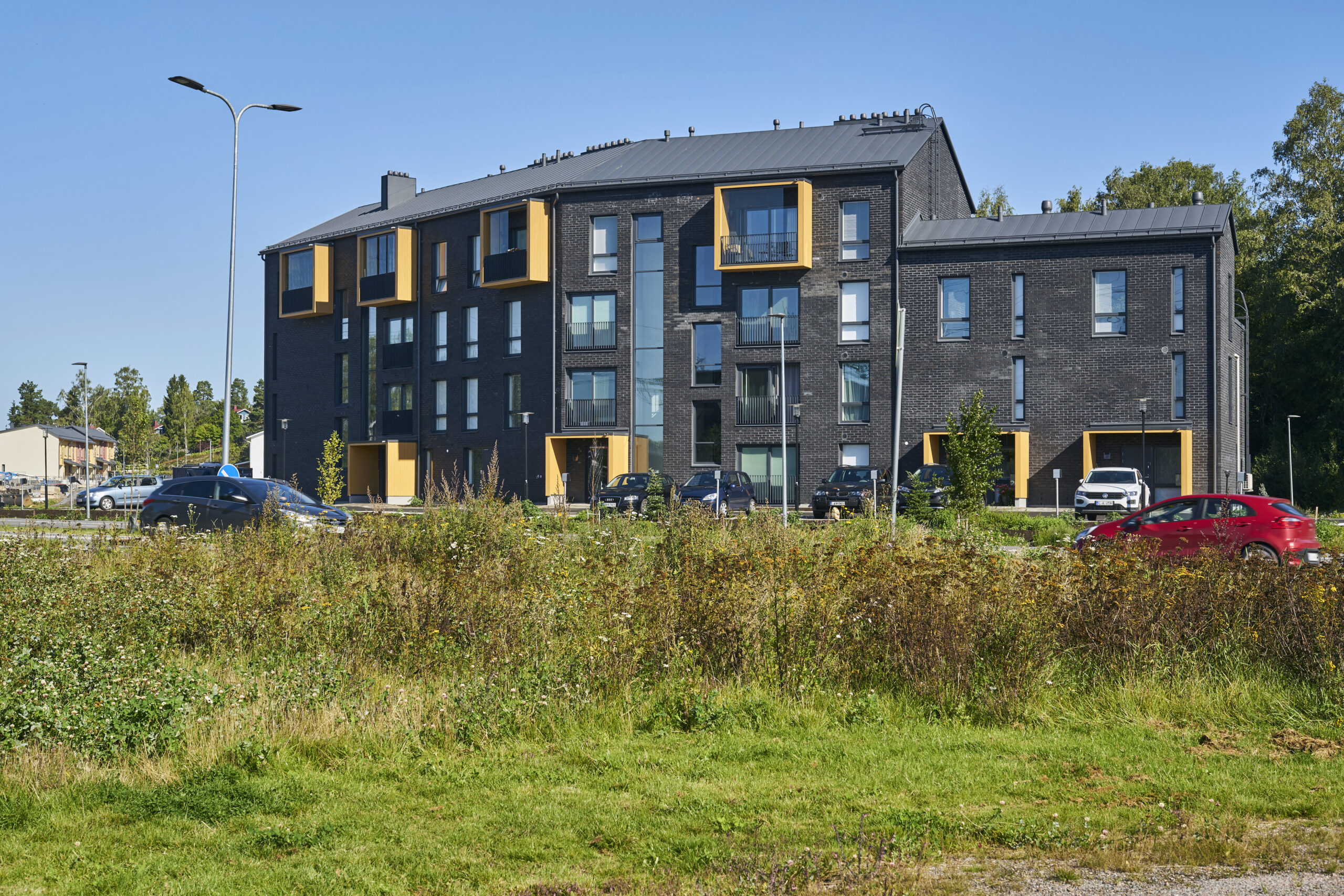 – Tiili luo myös staattisen ja arvokkaan leiman, jota tumma väri korostaa. Tumma väri sulautuu maisemaan, jolloin rakennus pientaloalueen porttina ei nouse suurempana massana liiaksi esille.