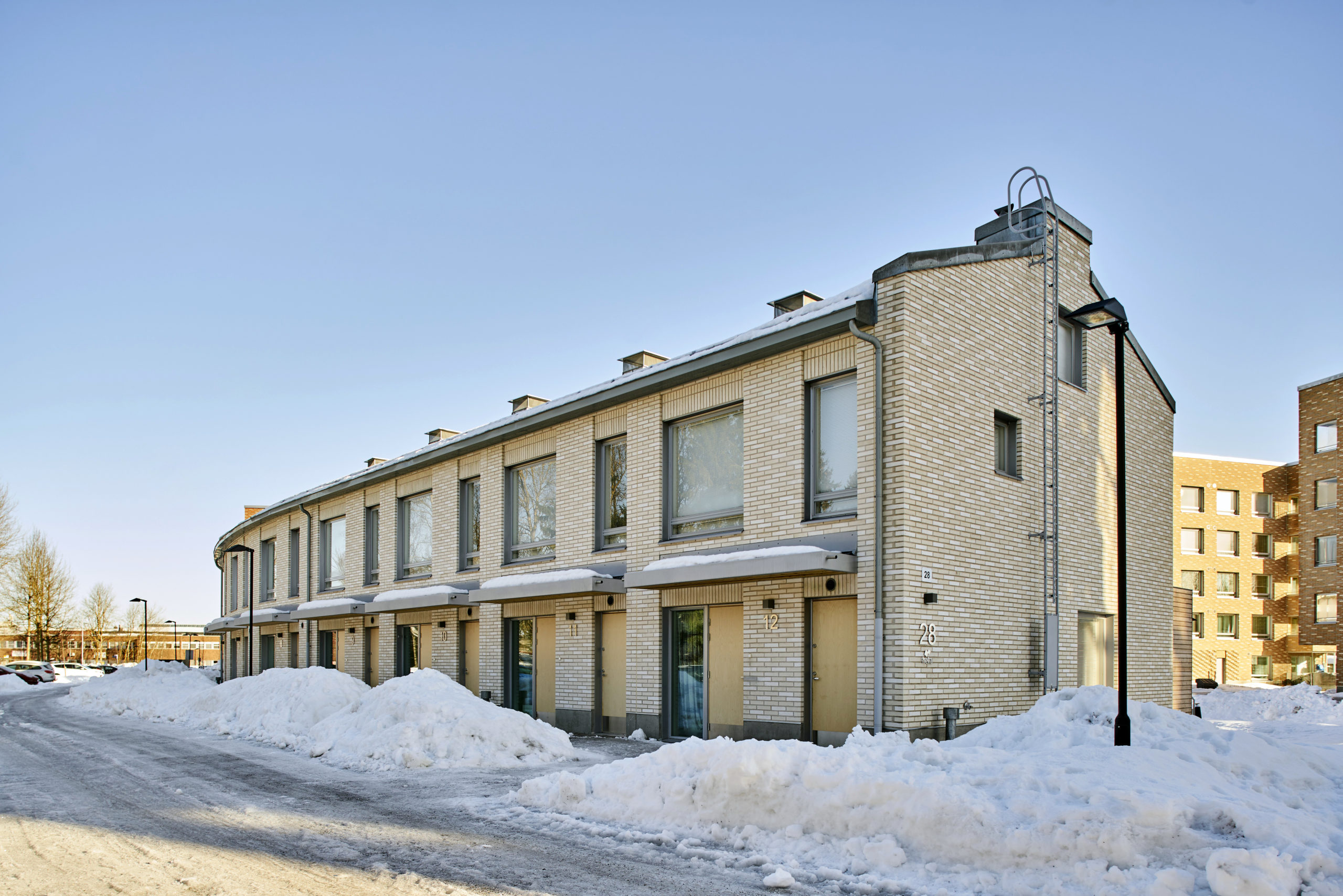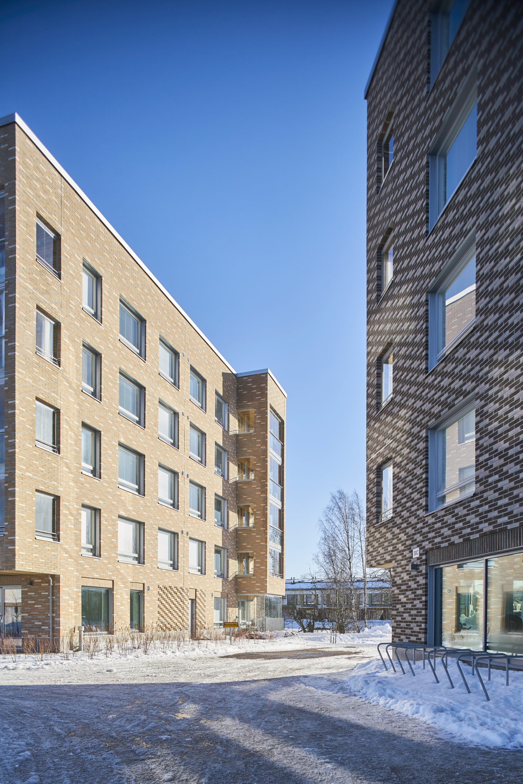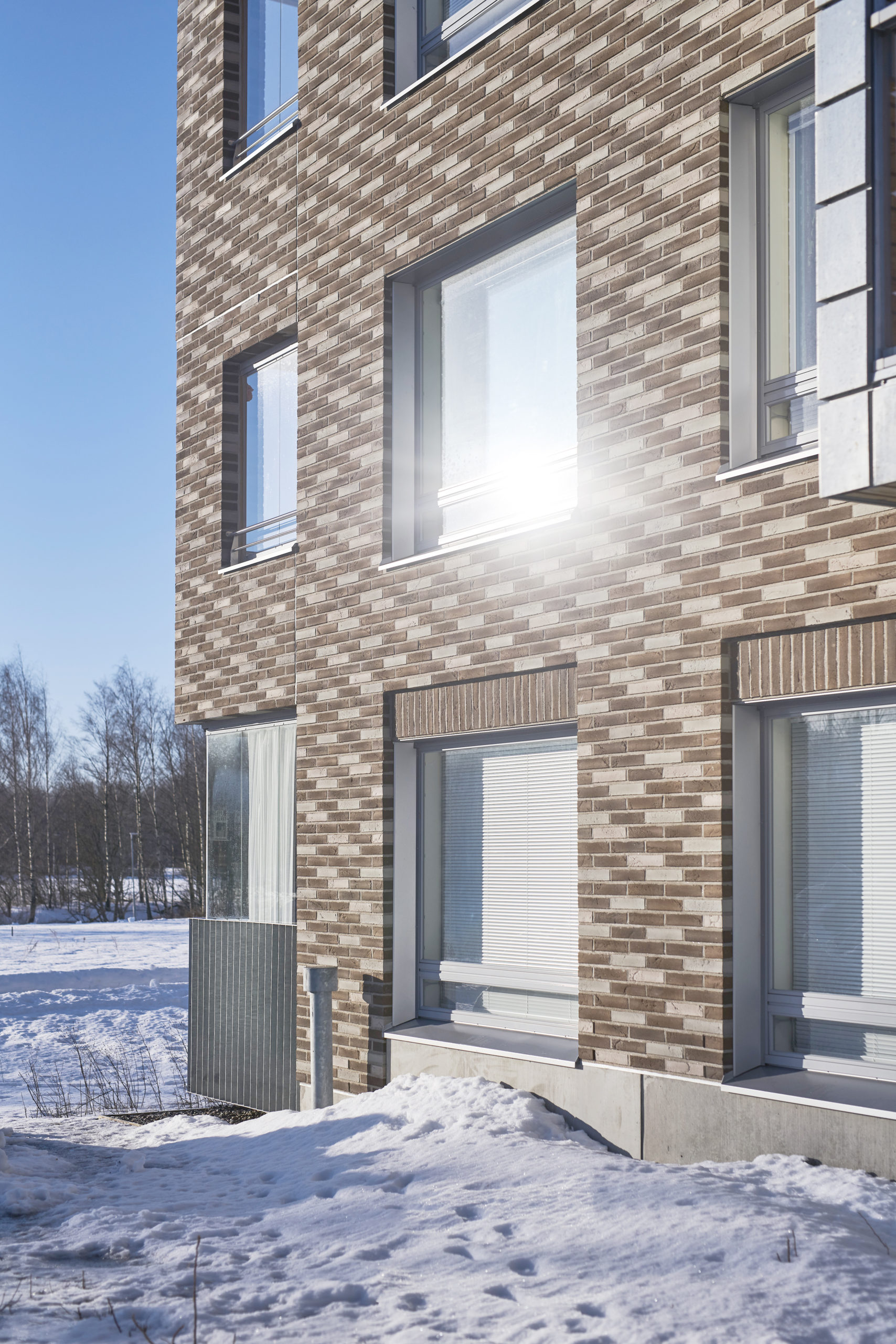 – Julkisivuissa on haettu hieman erilaista muurauspintaa ja eri väriyhdistelmillä on talopareille luotu oma identiteetti. Saumavärit on sovitettu taloittain tiilisekoitukseen. Tiilien asettelu noudattaa tiettyä järjestystä, jolloin julkisivuun on saatu dynaaminen ilme ja printtivaikutelma.