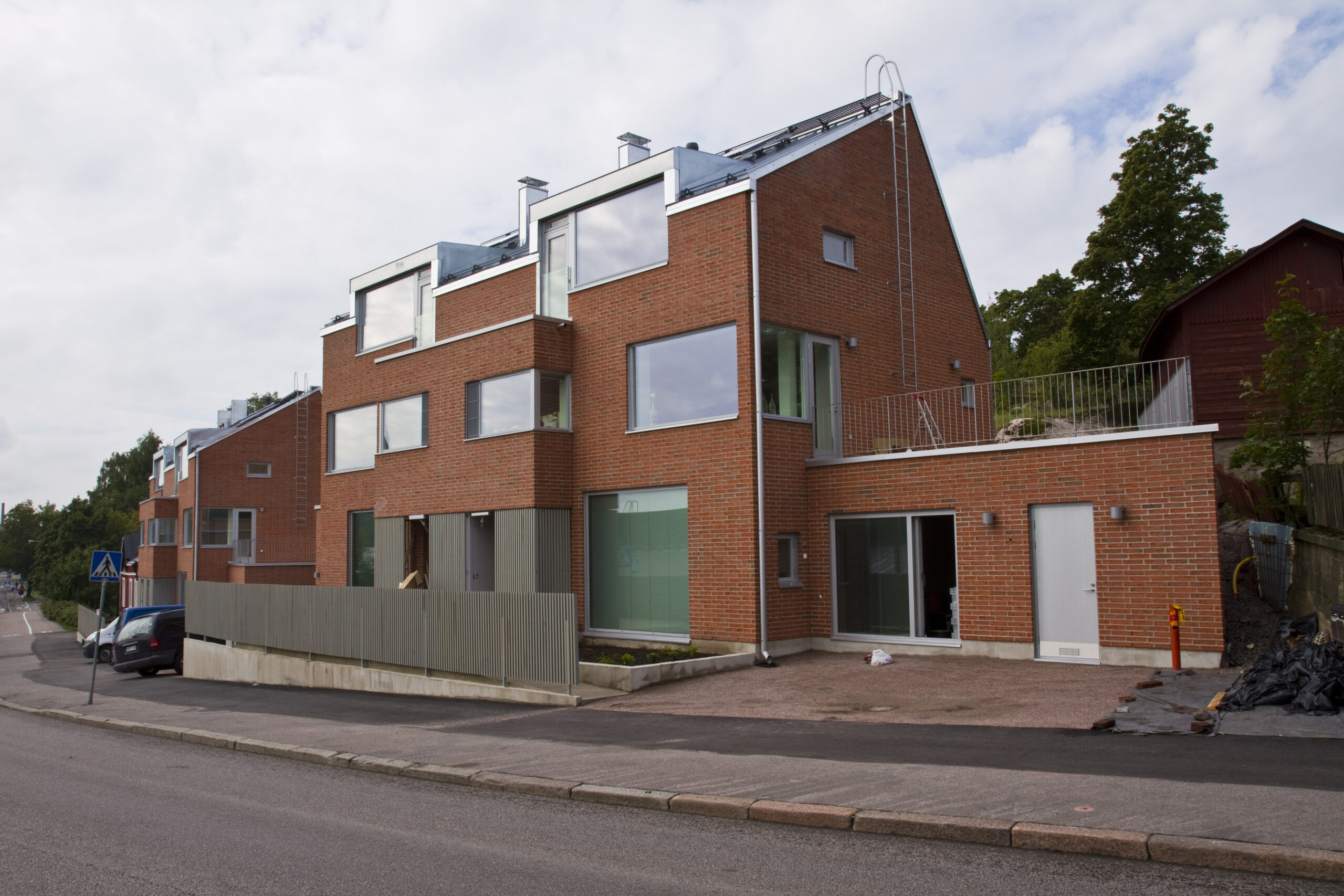 Runkomateriaaliksi rakennuttajaryhmä valitsi saksalaisen, mehiläiskennoa muistuttavan kennotiilen materiaalin hengittävyyden vuoksi. Tiilirungon etuna on myös sen massiivisuus, sillä yli puoli metriä paksu seinä varaa hyvin lämpöä. Julkisivumateriaalina on eläväpintainen ruukintiili liittäen rakennukset osaksi vanhaa tiilirakennusten miljöötä.