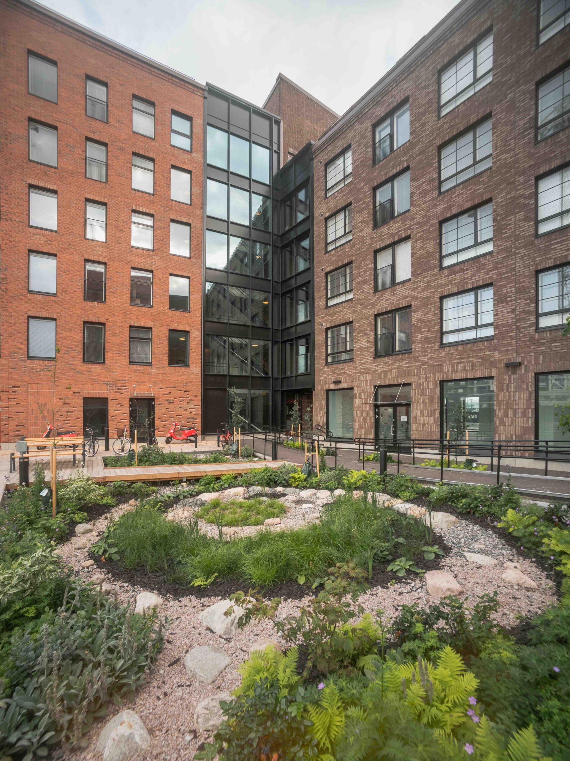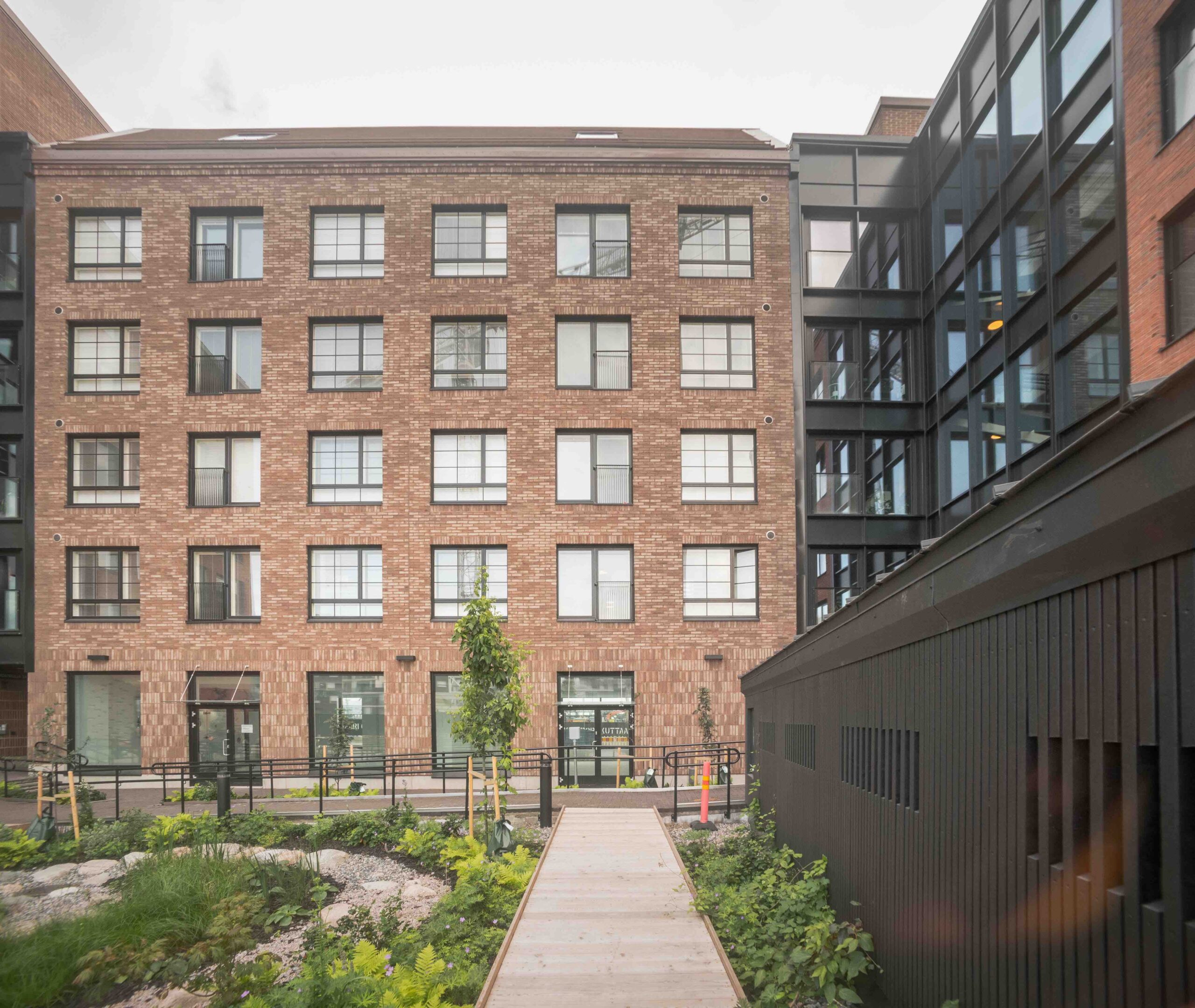 Suunnittelijat halusivat julkisivussa näkyviin myös käden jälkeä, vanhaa teollista ympäristöä heijastavaa tiilimateriaalia, johon yksilöllinen Ruukintiili sopii hyvin.