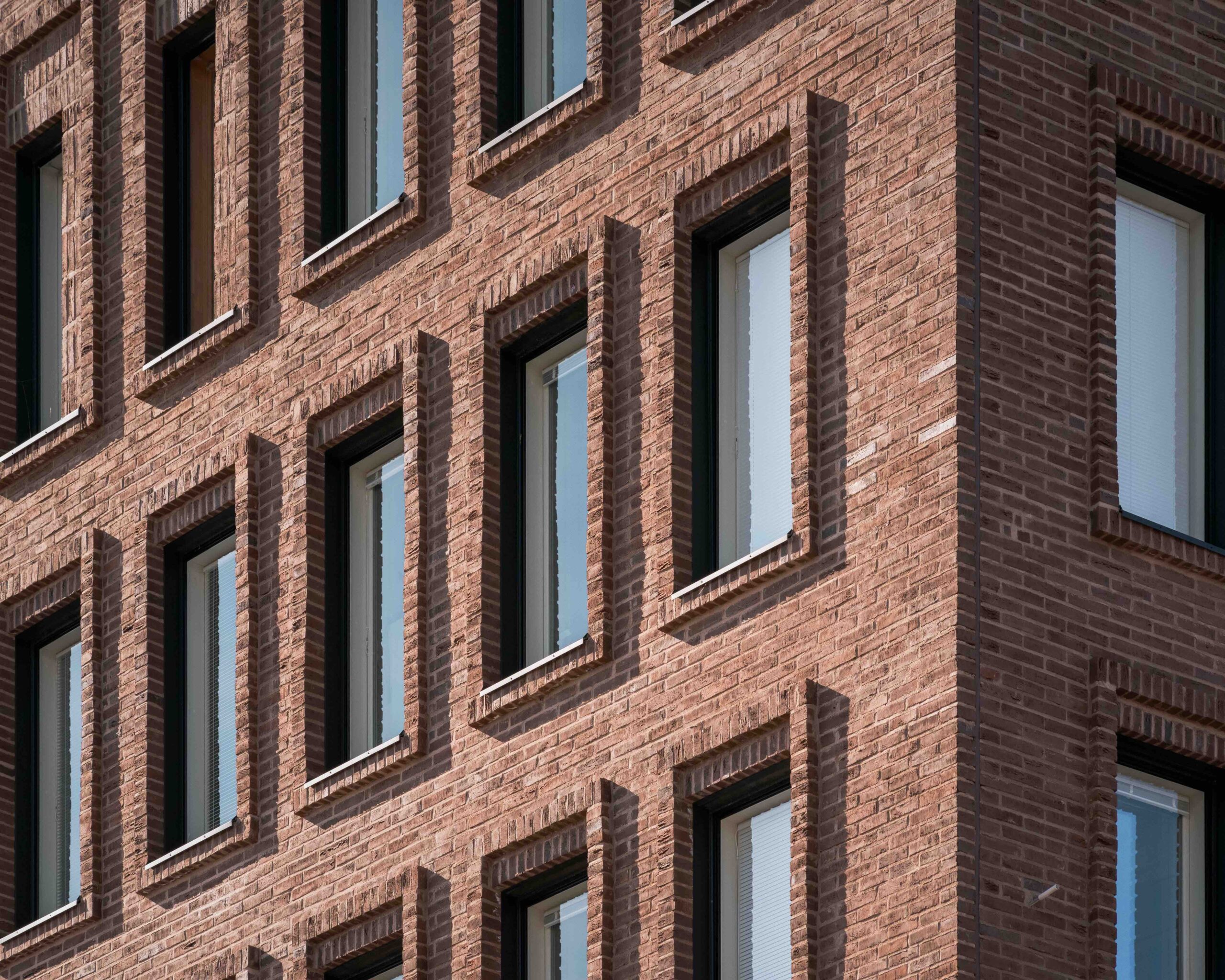 Helsingin Jätkäsaareen, Melkinlaiturin alueelle valmistuneen asuinkerrostalon tiilijulkisivu on häkellyttävän monimuotoinen, kun sitä malttaa tarkastella vähän kauemmin.