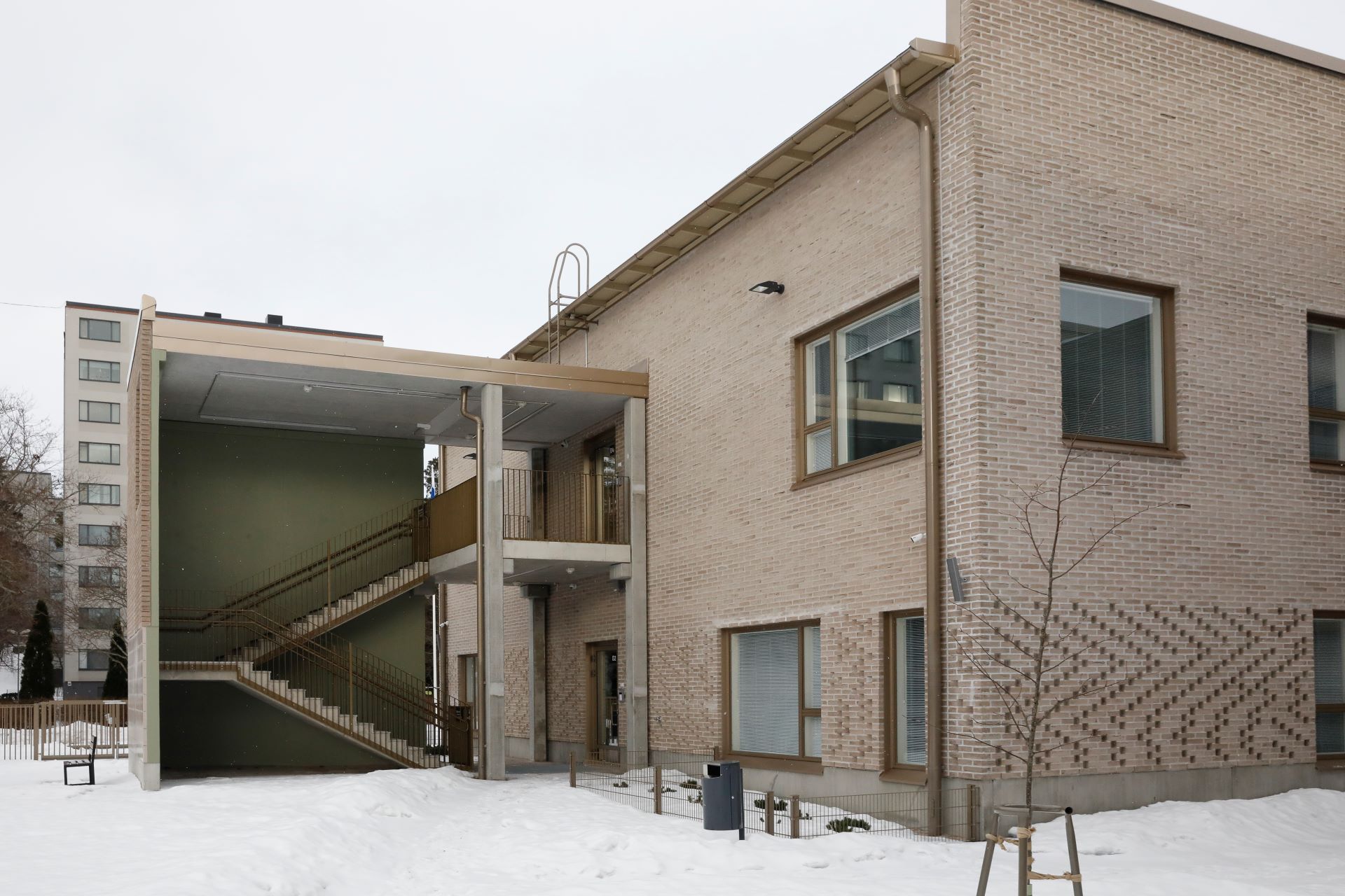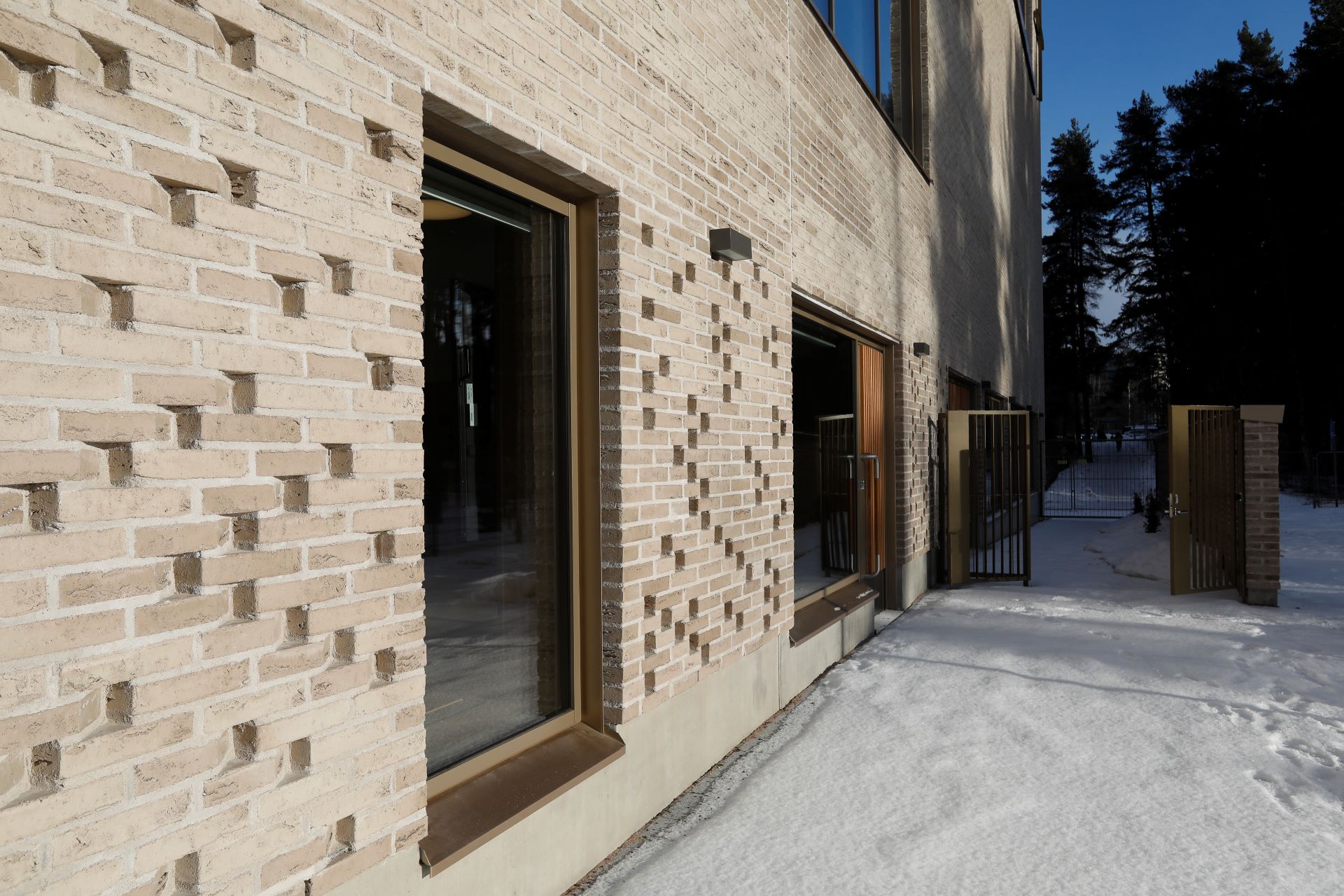 Olikin luontevaa suunnitella tiilijulkisivu myös Runosmäen monitoimitaloon. – Kohteen arkkitehtuurissa ideana ovat tiiliset laatikot ja niiden välinen vapaa tila, joita lasijulkisivut yhdistävät, Solla pelkistää.