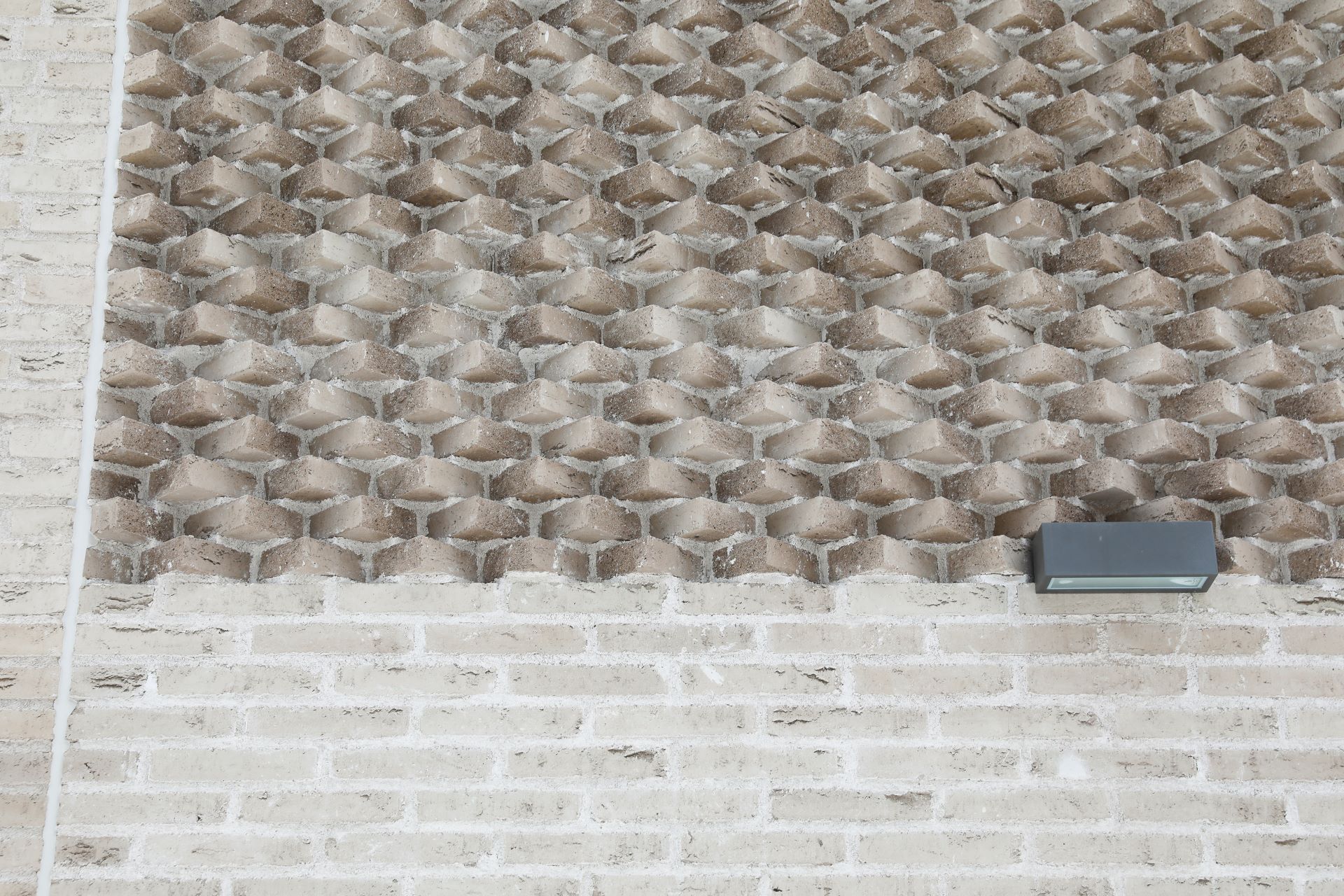 Muurauksessa suunnittelijat ovat päästäneet luovuutensa valloilleen. Riimin julkisivussa tiilenkäyttö on hyvin ennakkoluulotonta ja tuo oivallisesti esiin tiilen käytön monenlaisia mahdollisuuksia. Kohteessa on niin osittaisia reliefejä kuin kulmatiilien avulla toteutettua elävää pintaa. – Meillä oli ajatus sattumanvaraisesti etenevistä syvennys- ja tasopintakuvioista, Solla kertoo. Kirkkosalin päätyseinän reliefijulkisivu on kokonaistaideteos.