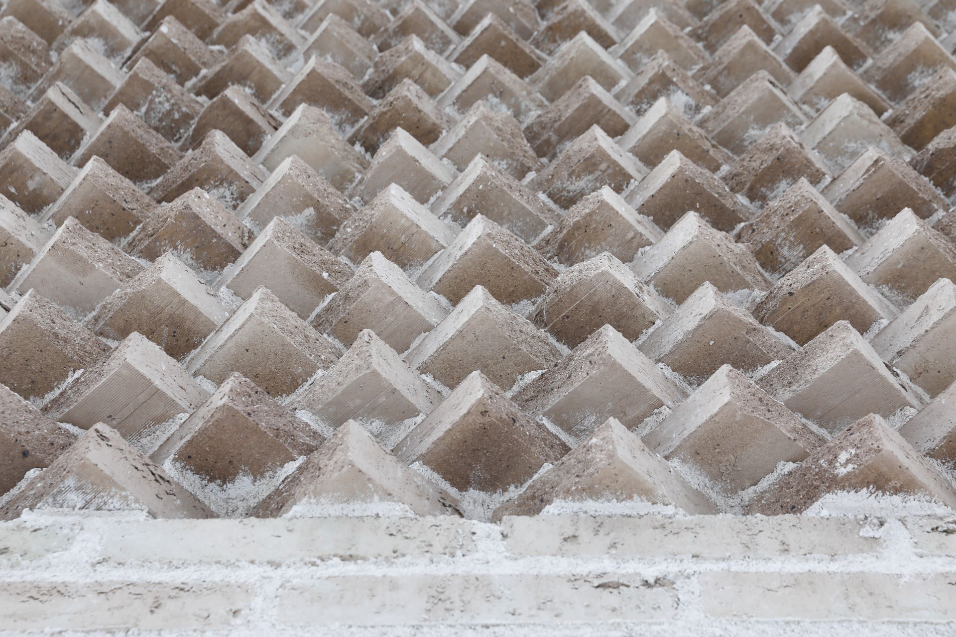 Tiileksi valittiin Tiilerin Ruukintiili Nordic Grey ja sama reliefitiilenä. Ruukintiili on märkälyötimenetelmällä tehty kestävä umpitiili. Jokainen tiili on perinteiseen tapaan valmistetun tiilen lailla ainutlaatuinen. Ruukintiili on umpitiilenä myös täysin kierrätettävä. Se voidaan ottaa seinästä ja käyttää uudelleen.
