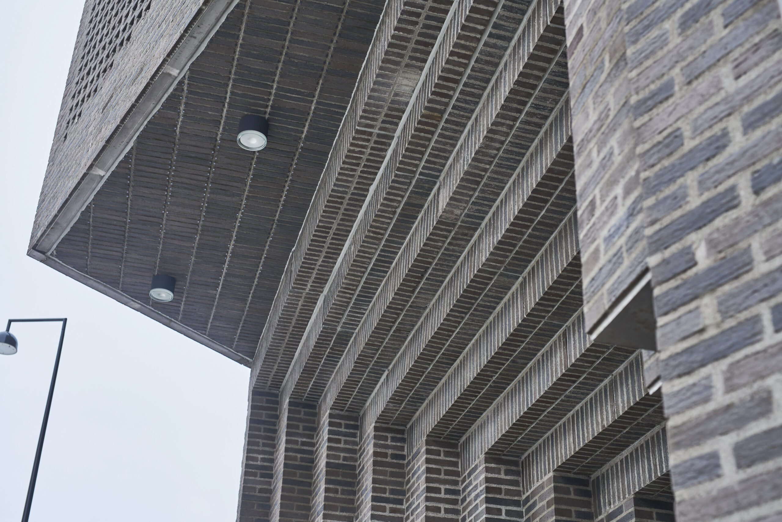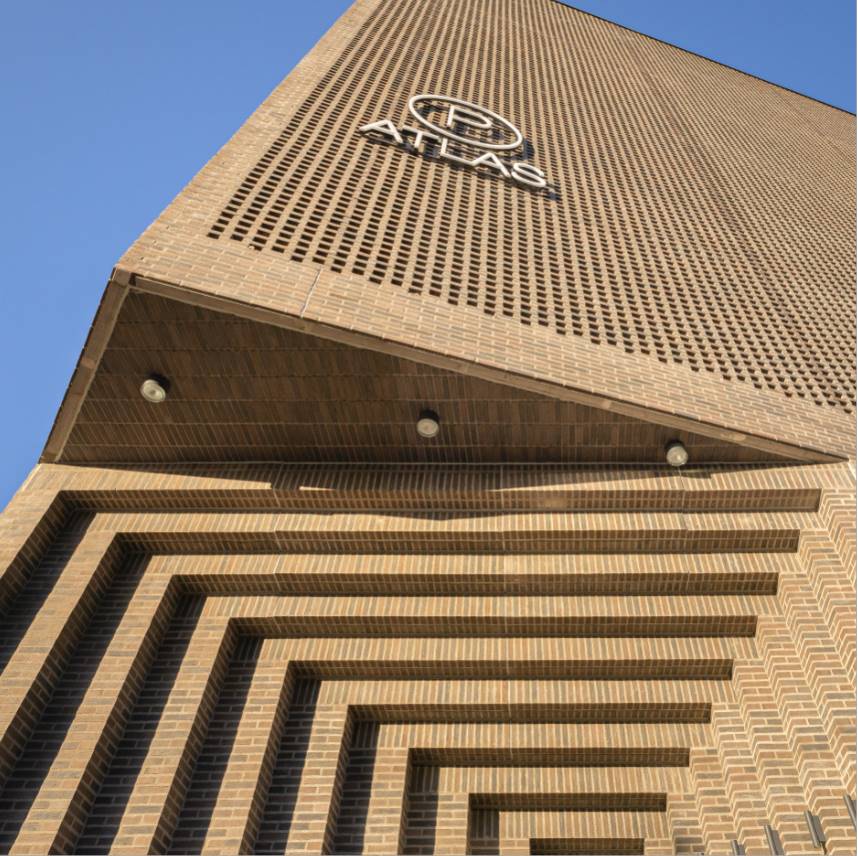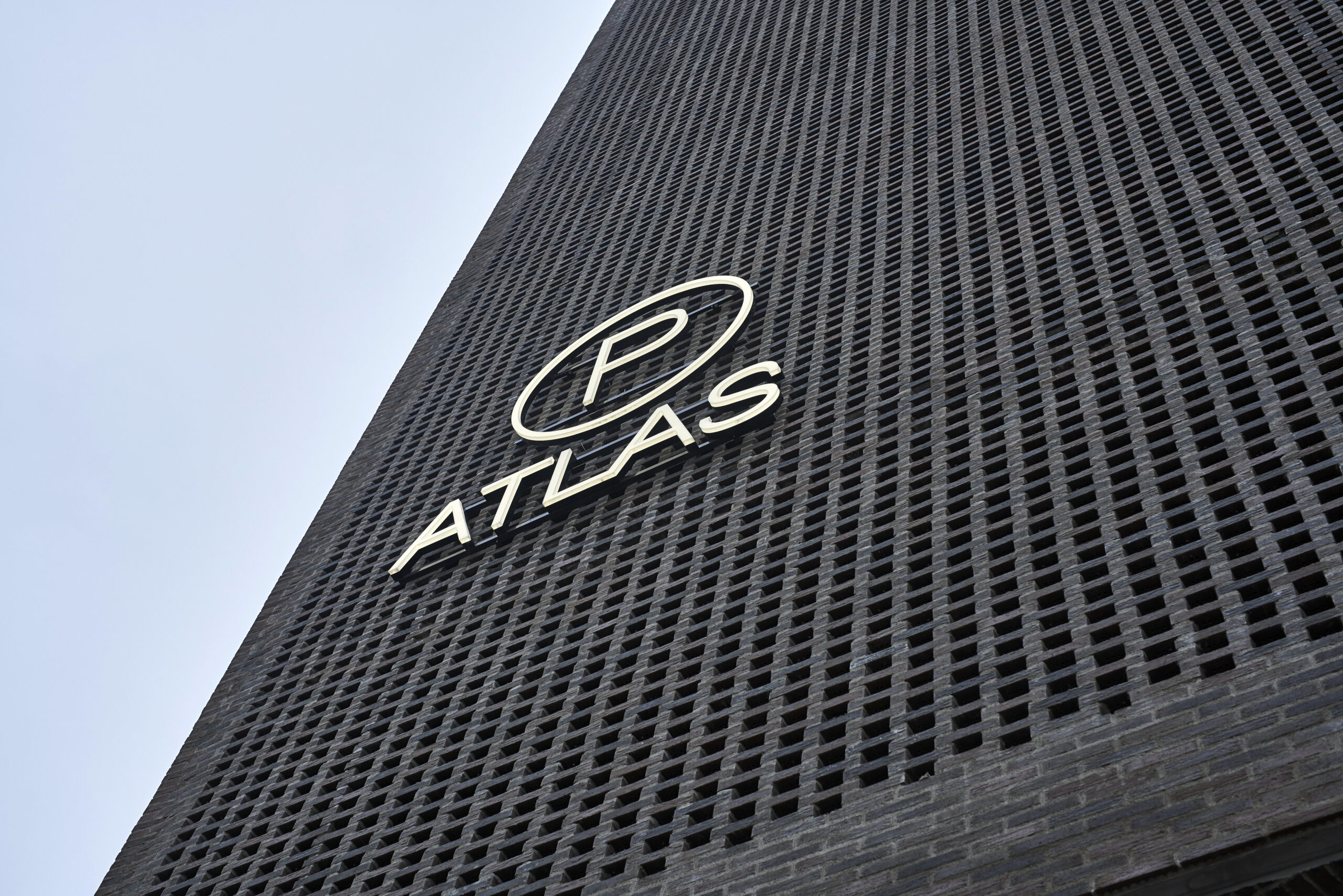 Muurattua pintaa P-Atlaksessa on noin 4 000 m2, niin umpeen muurattuna kuin perforoituna. Päivänvalossa pitsimuurausta tuskin erottaakaan, mutta pimeällä pysäköintikerrokset muuttuvat läpi heijastuvien valojen ansiosta satujen taikalyhdyksi. Silloin P-Atlaksen julkisivun tiilimuurauksessa leikkivät valo ja varjot.