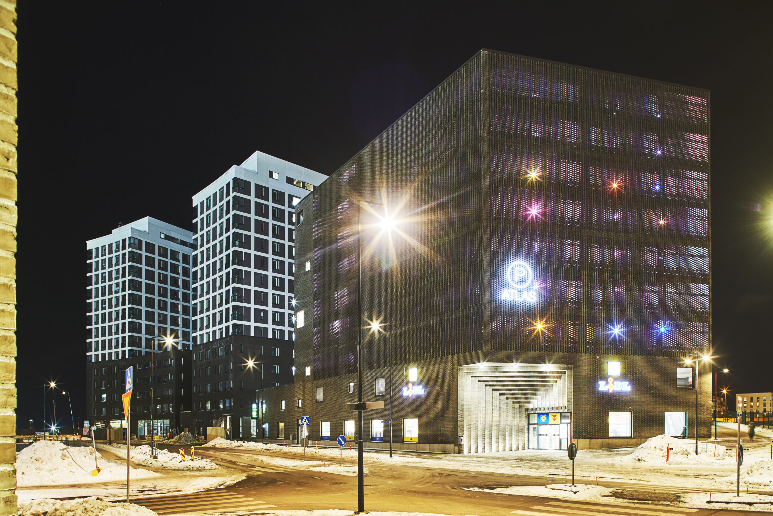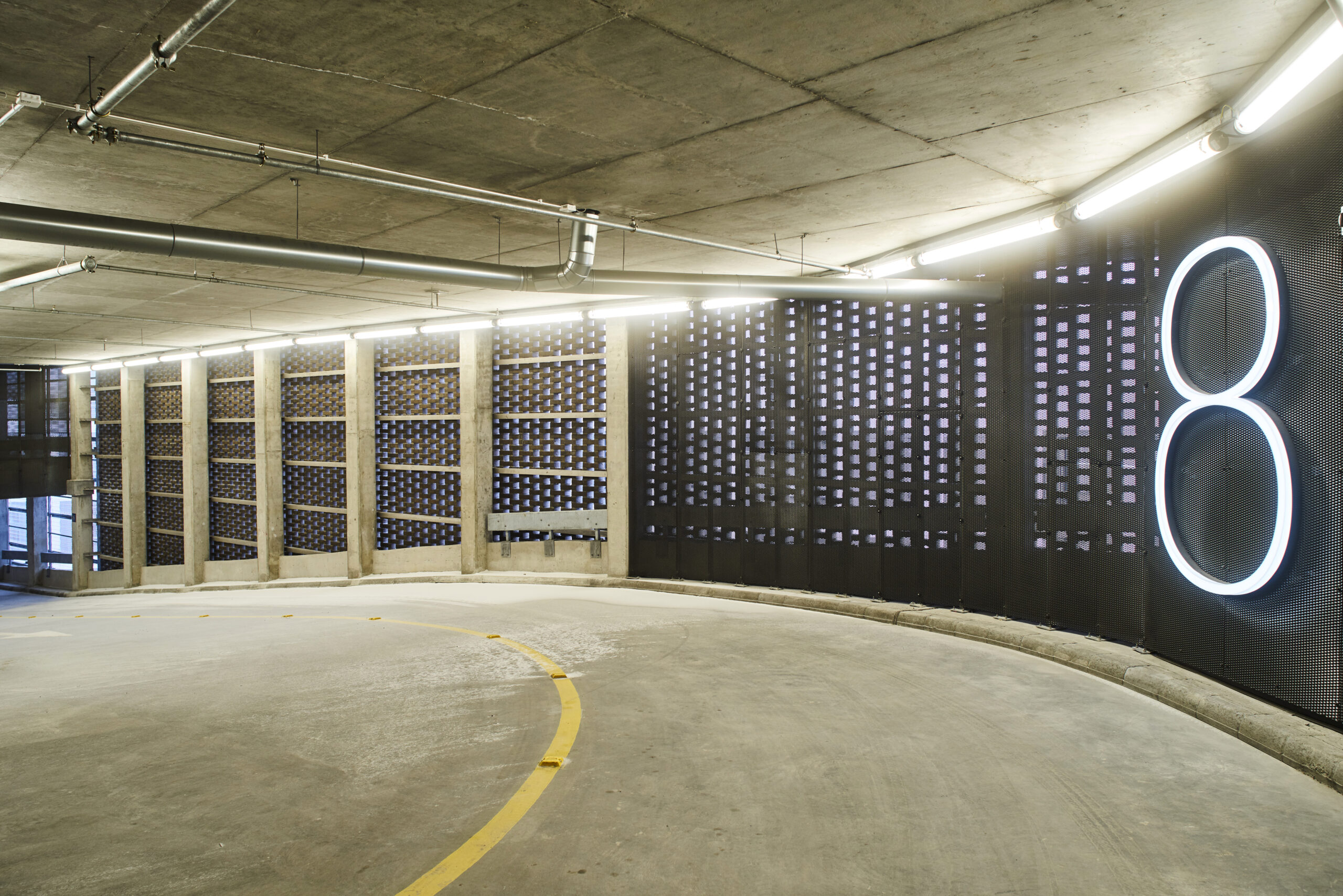 Pysäköintilaitoksen ensimmäisessä kerroksessa sijaitsee päivittäistavaramyymälä. Rakennuksen toisessa kerroksessa on kaupan asiakaspaikkoja ja sitä ylemmissä kerroksissa autopaikkoja asukkaille. Kaikkiaan rakennuksessa on kahdeksan kerrosta ja autopaikkoja 474.