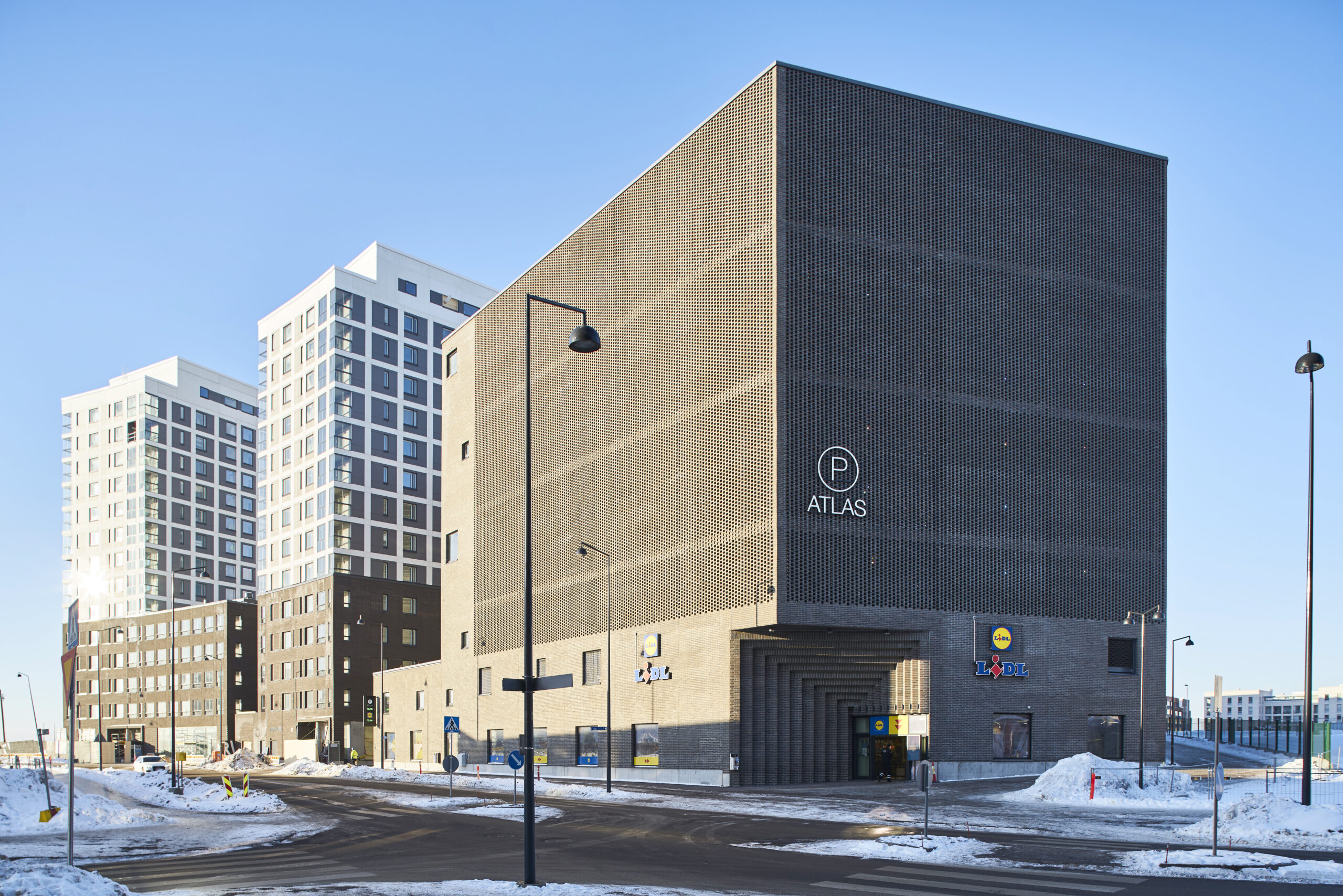 Helsingin Jätkäsaaren P-Atlas edustaa pysäköintilaitosten arkkitehtuurin uutta suuntaa. Sen rakennuttaja Jätkäsaaren Pysäköinti Oy halusi panostaa keskelle kaupunkitilaa sijaitsevan pysäköintilaitoksen arkkitehtuuriin ja sitä Helsingin kaupunki edellytti myös kaavamääräyksissään.