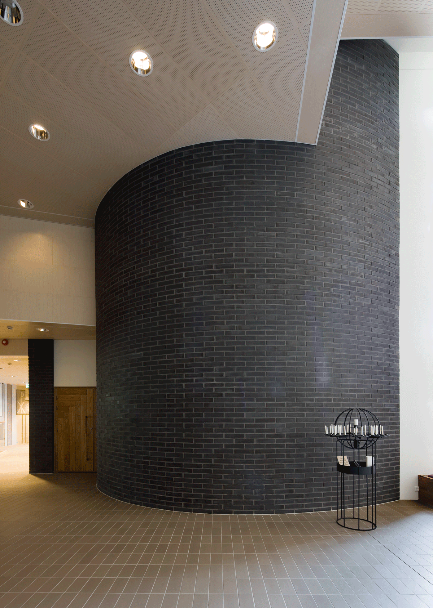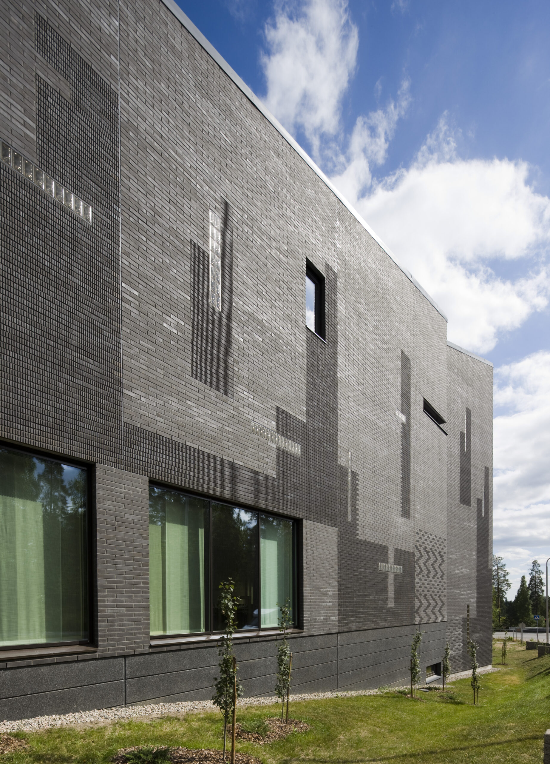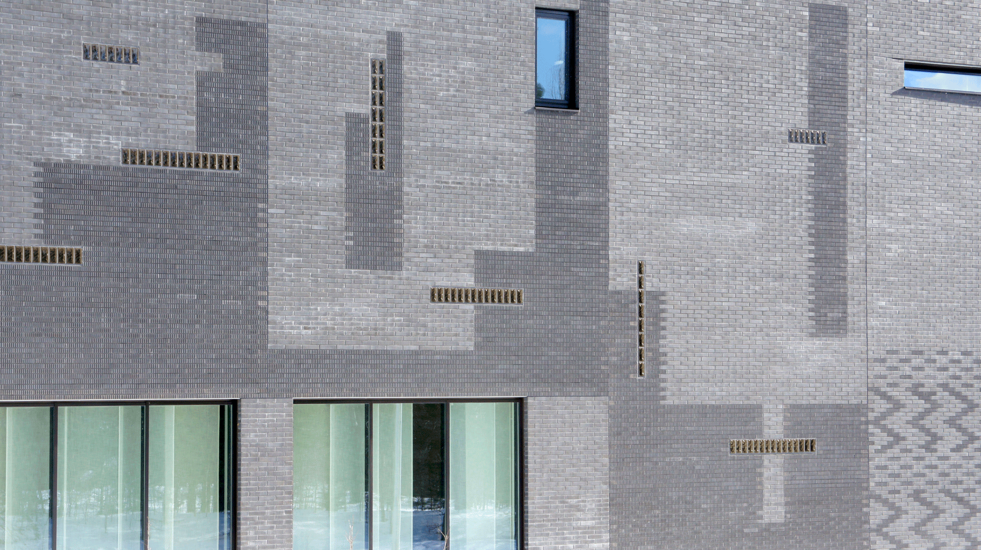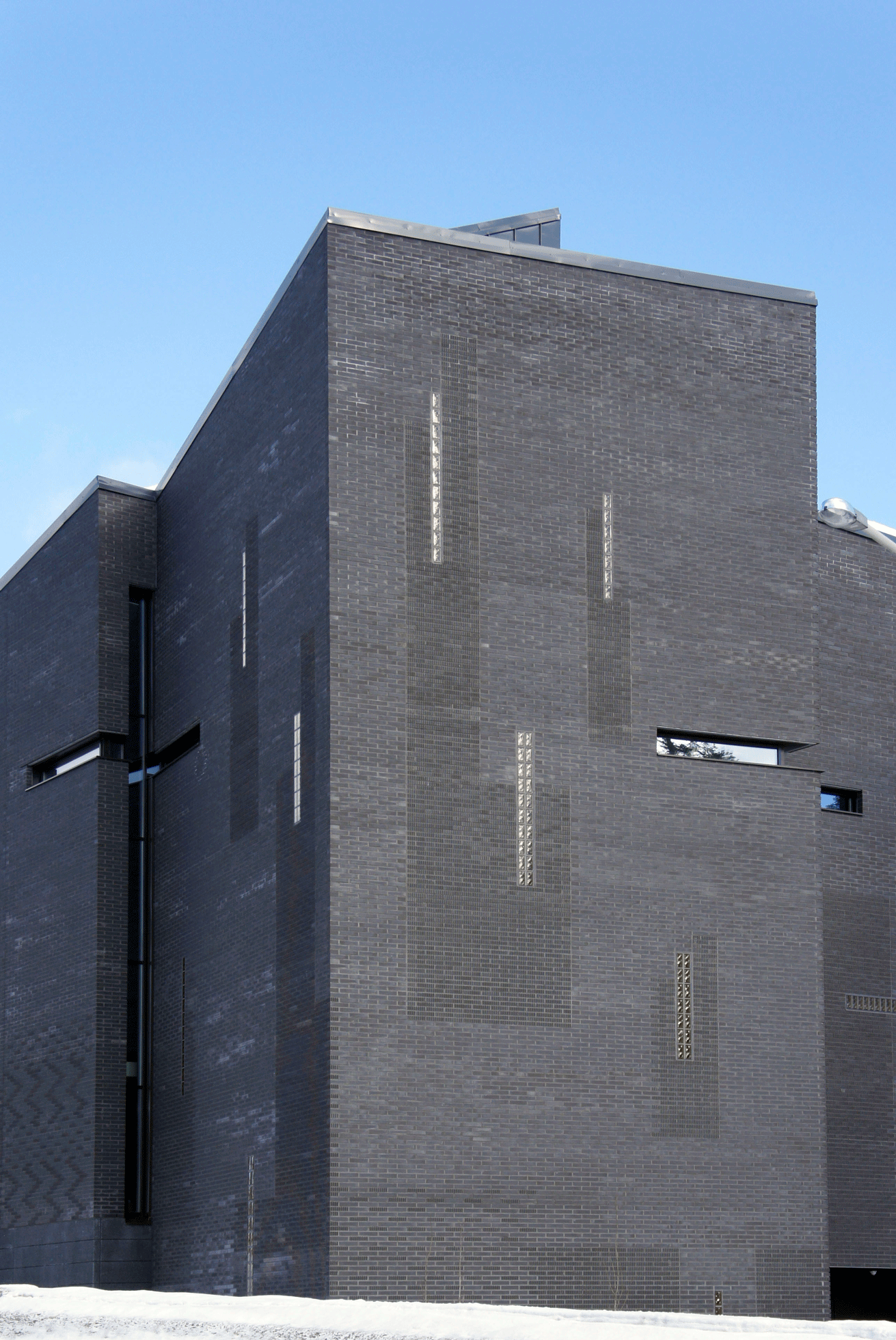 Julkisivujen uritettu tiili tuo pintaan erilaisia varjoja auringonvalon mukaan, mikä saa pinnan elämään. Tiilipinnan kuviointi on moderni viittaus Pyhän Marian kirkon päätykoristeisiin.
