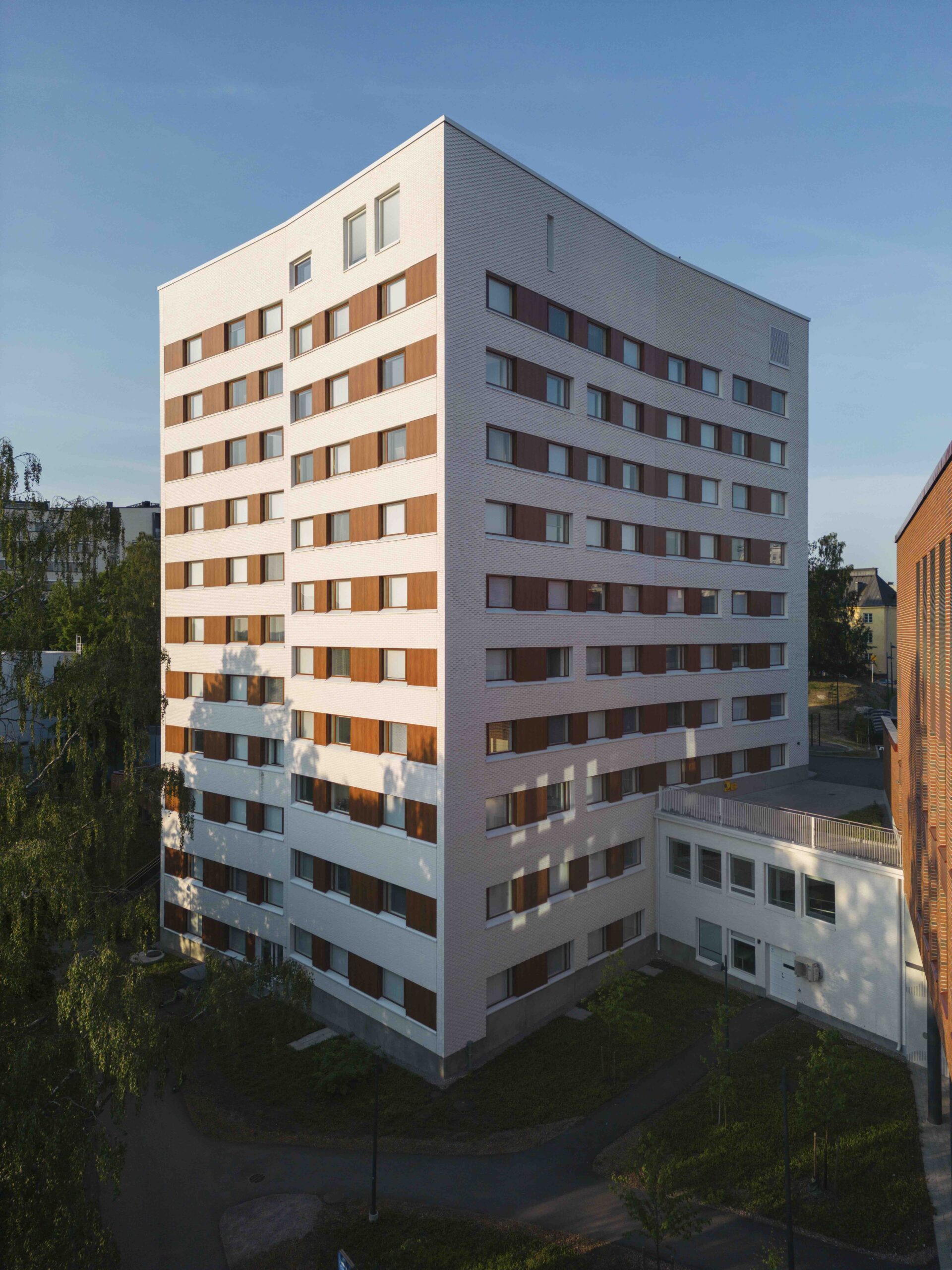 – Talotyypin ohella ympäristö antoi vaikutteita myös rakennuksen yksityiskohtiin, vaaleisiin väreihin ja nauhafasadeihin. Käyttäjien ja ympäristön asettamat lähtökohdat ovatkin tärkeimmässä roolissa töissämme.