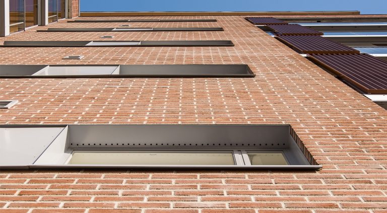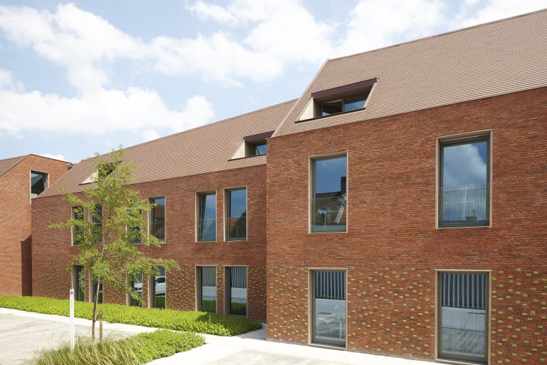 Engelendale-palvelutalo: moni-ilmeistä tiilipintaa ohutsaumauksella