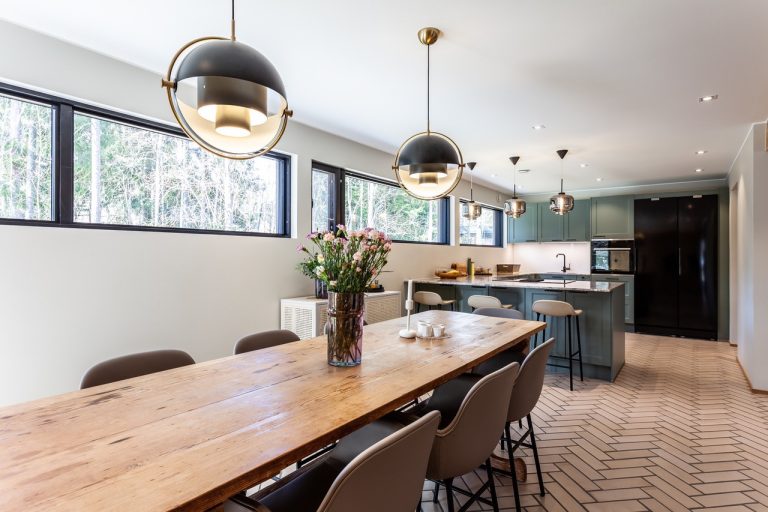 Vaalea tiililaatta lattiassa kruunasi 1970-lukulaisen kodin remontin