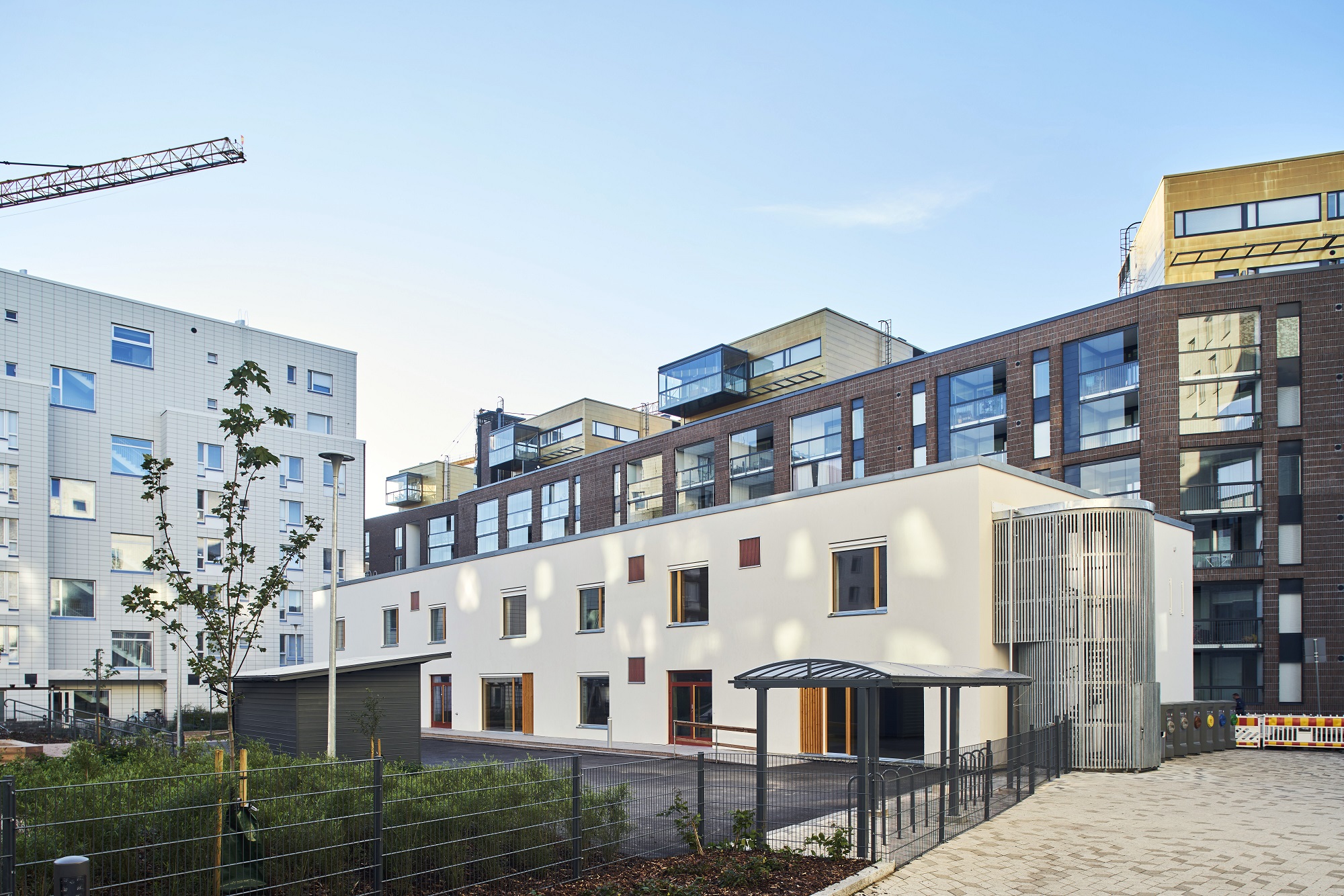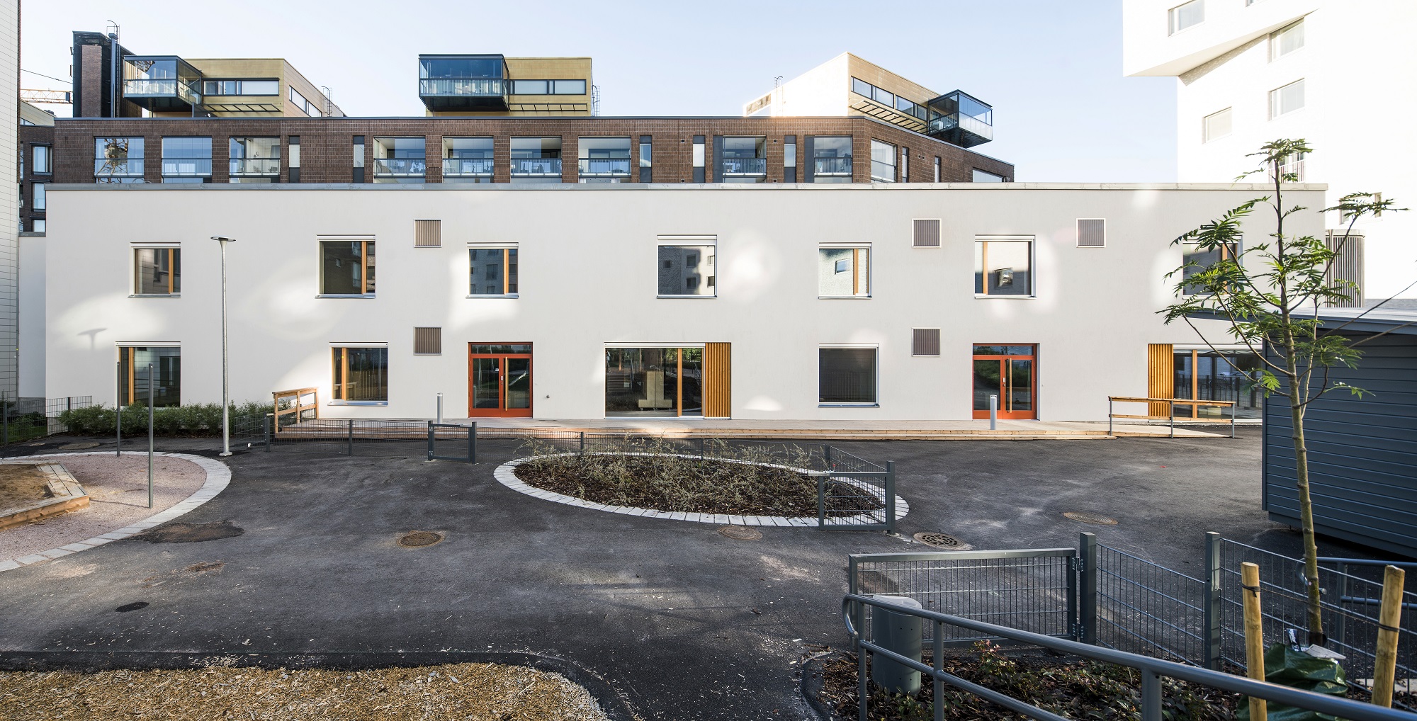 Jätkäsaareen valmistui vuonna 2020 päiväkoti, jonka runkomateriaalina on keraaminen kennoharkko.
